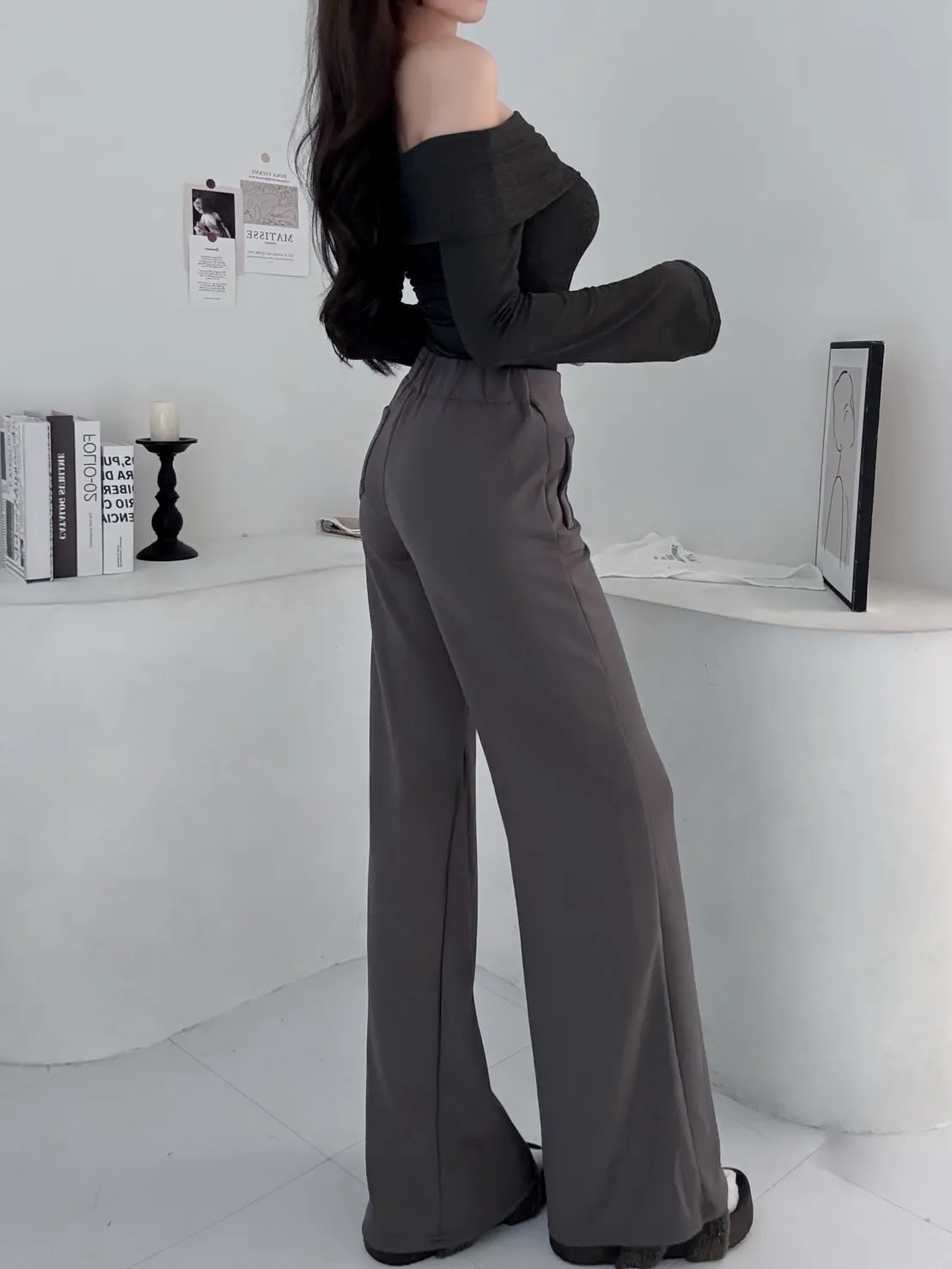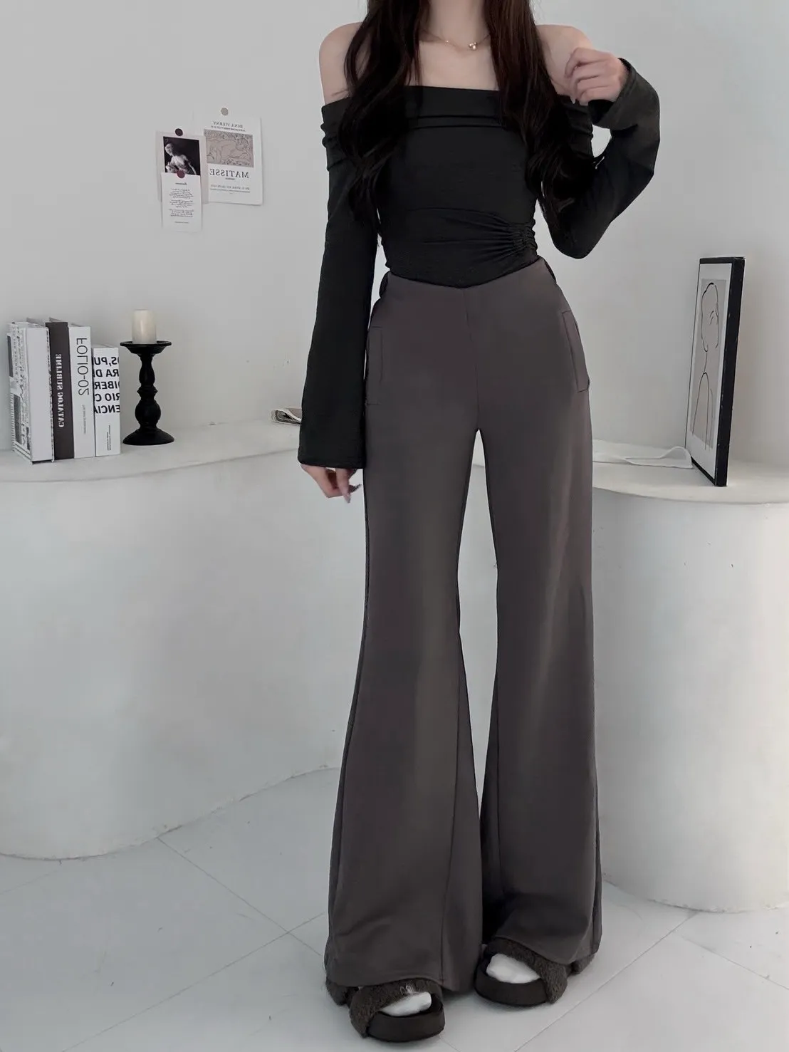 設計彈性喇叭闊腿長褲