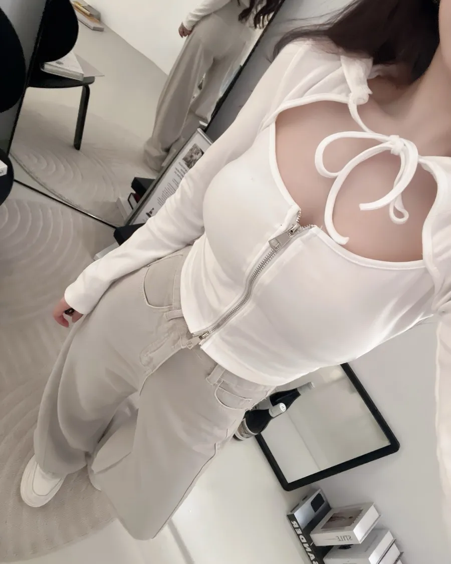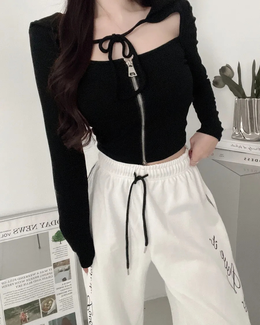 連帽拉鍊綁繩設計感短版上衣