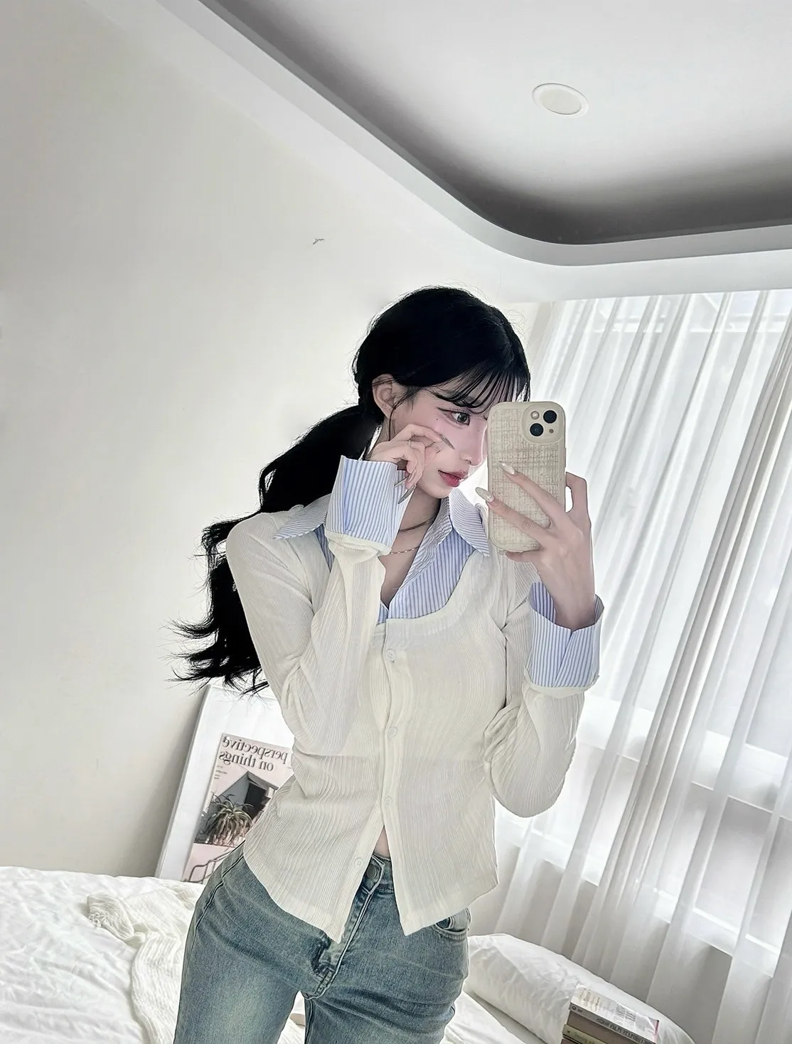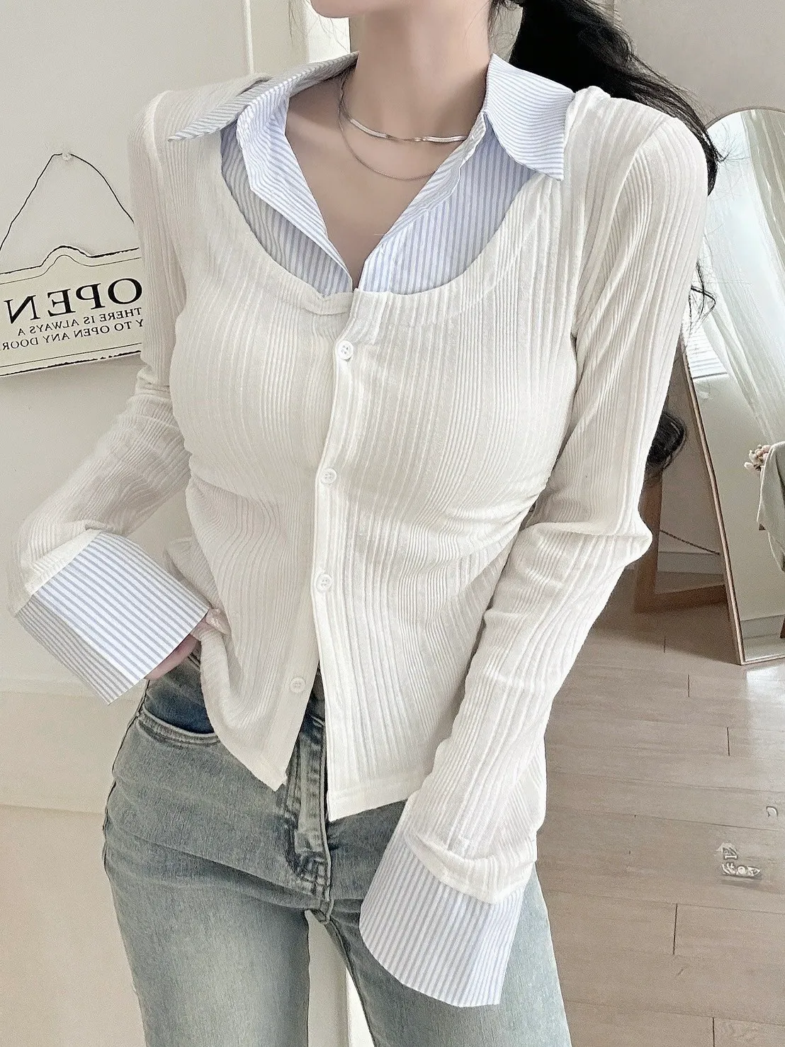 針織拼襯衫設計把學院感拿捏得很剛好 清爽又帶氣質📚
