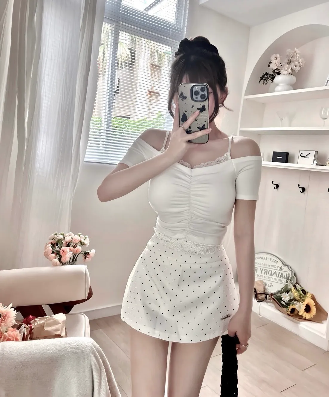 法式點點短裙