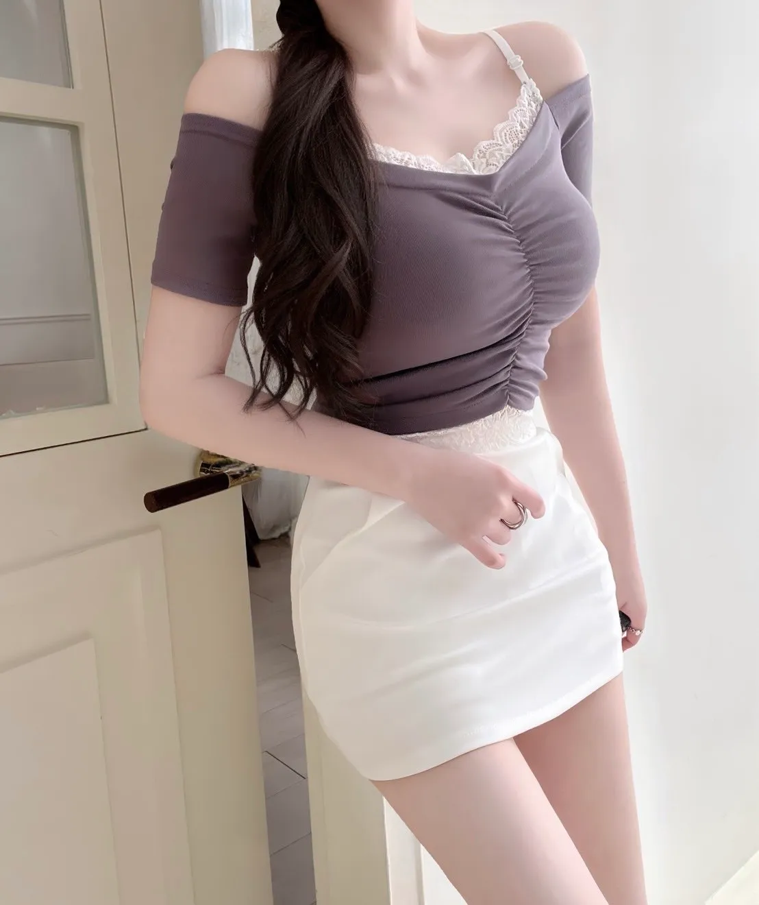 拼接蕾絲滾邊多了一點柔美細節