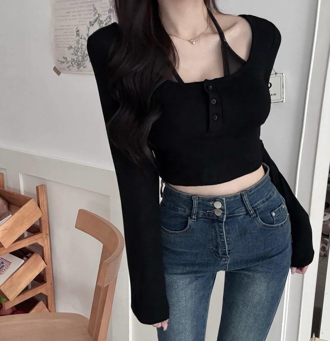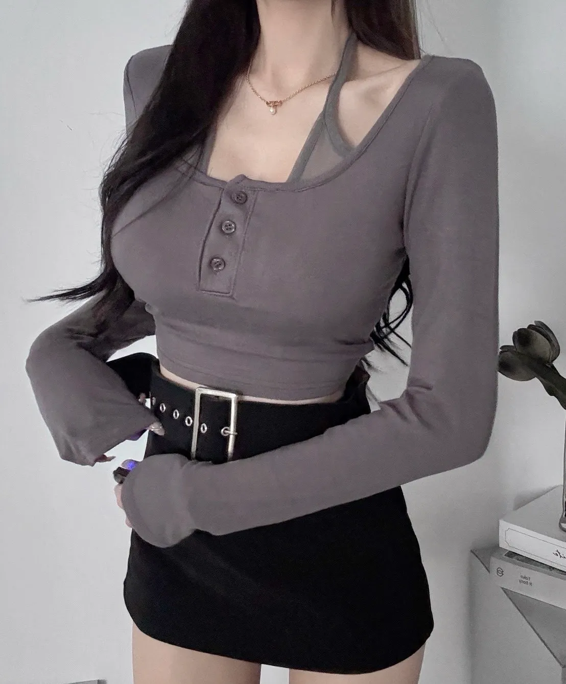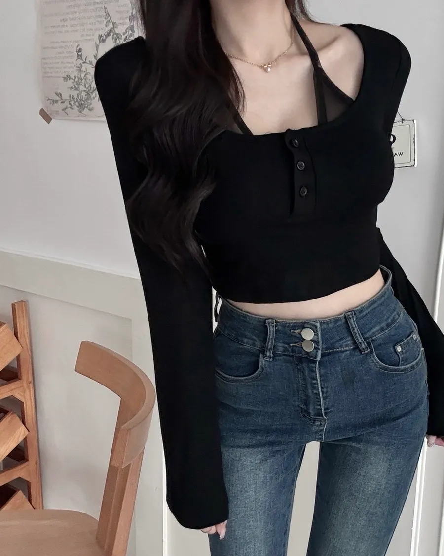 掛脖綁繩把肩頸線條整個拉出來
