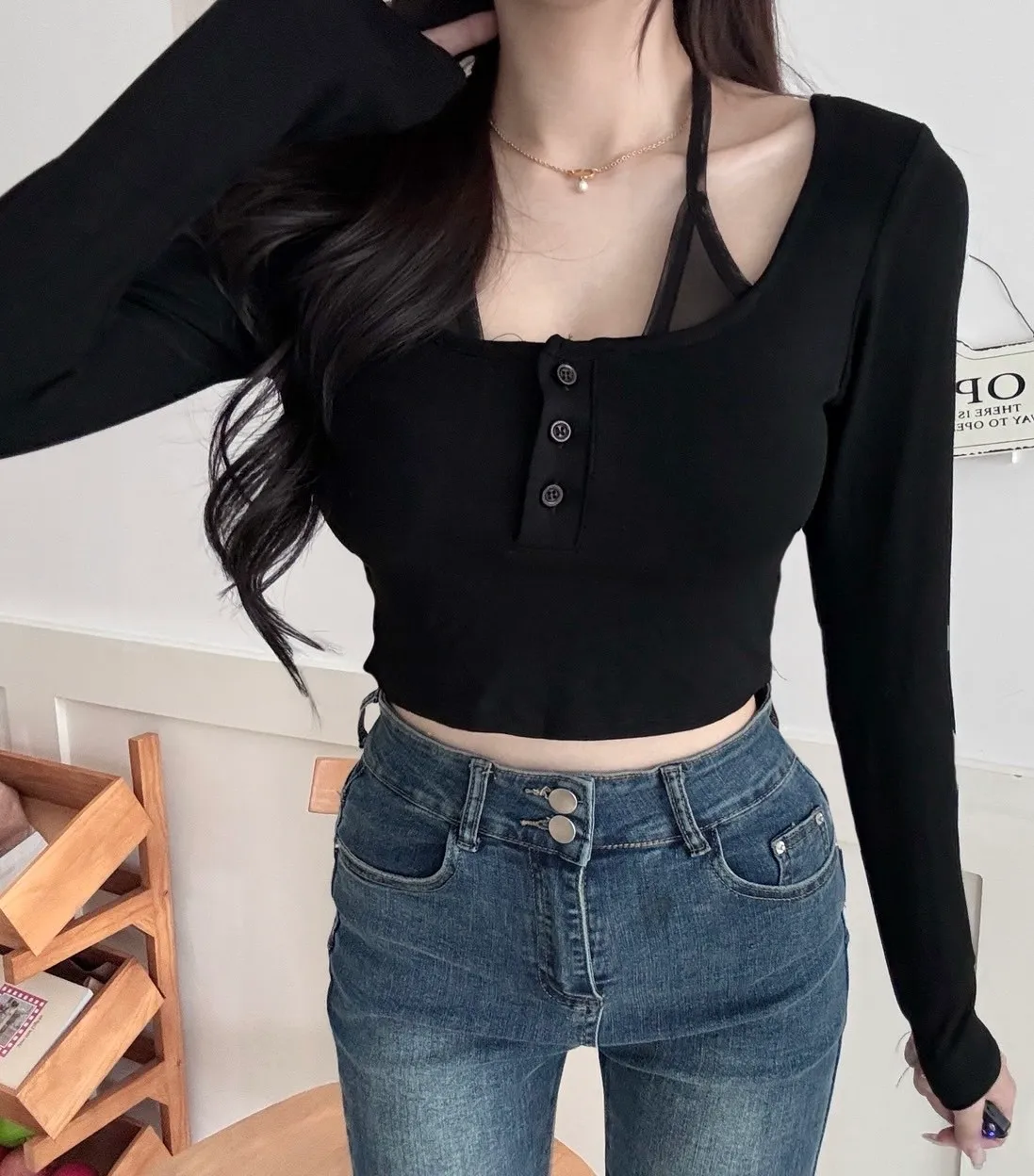 拼紗假兩件設計多了層次感