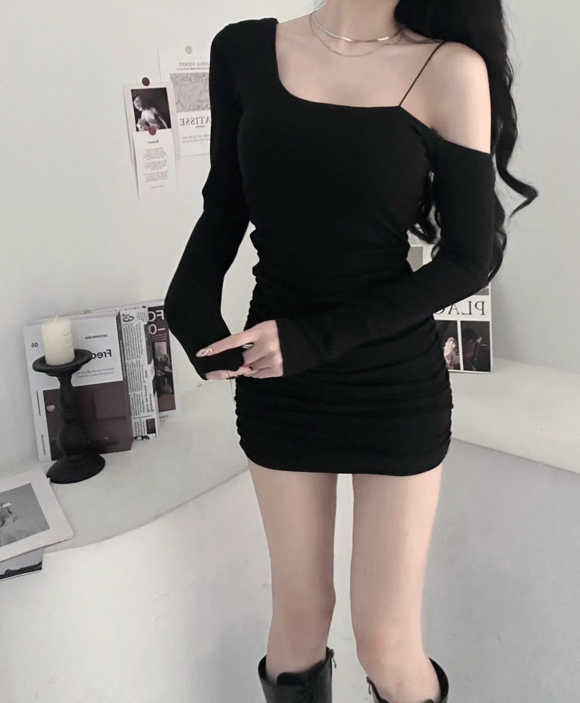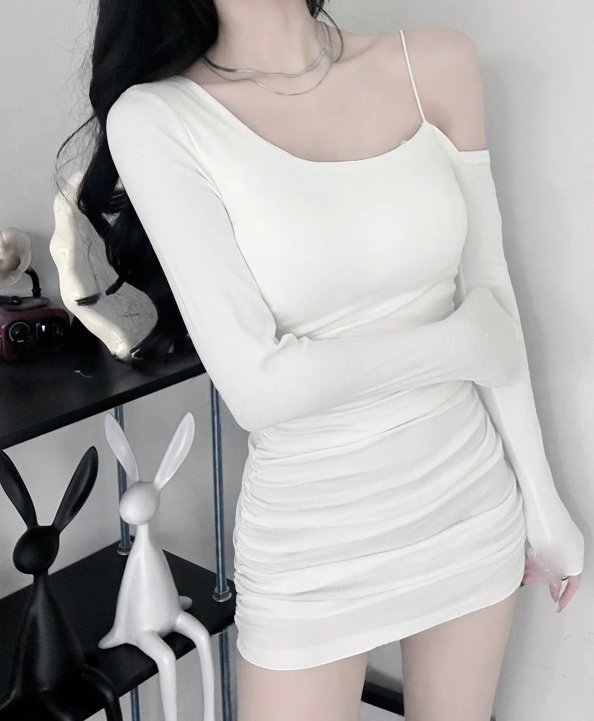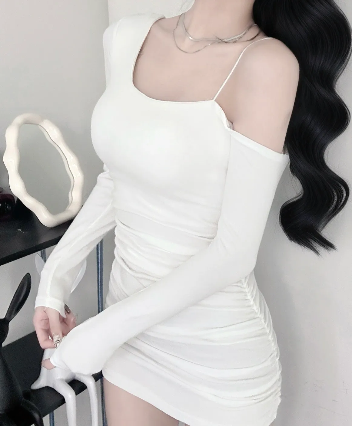 單邊細肩帶設計很有記憶點把肩頸線條襯得特別俐落✨不對稱剪裁多了一點個性感視覺自然聚焦🎩側抓皺順著身形收線條腰臀比例被修飾得很好🪞內杯結構單穿就安心日常約會或聚會都很適合❗️❗️白 / 奶 / 桃粉 / 藍 / 泥灰 / 炭 / 黑#ootd