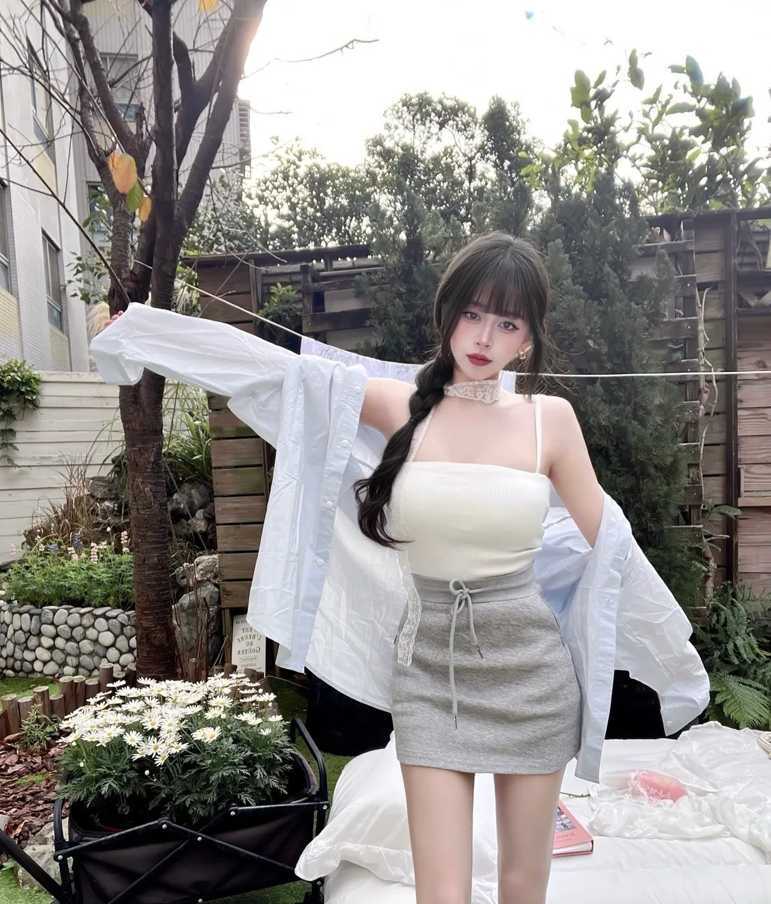 高腰抽繩設計把腰線往上收