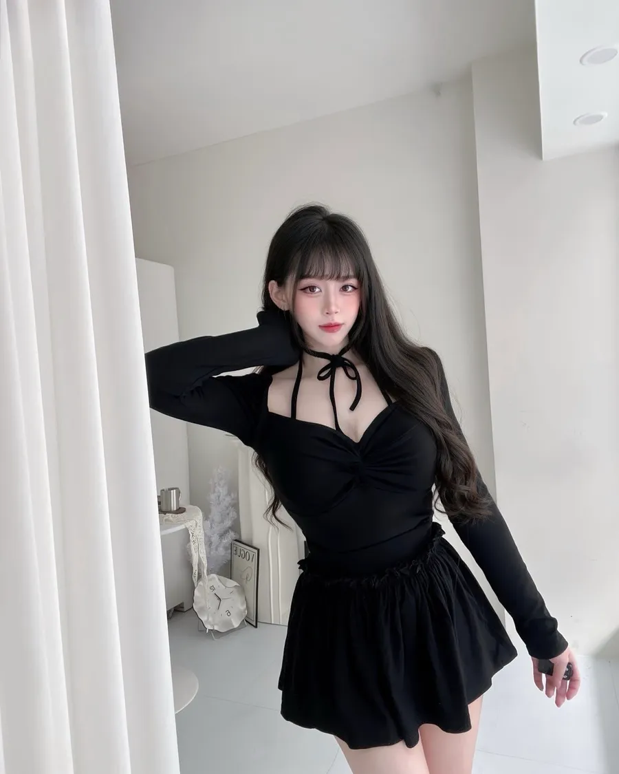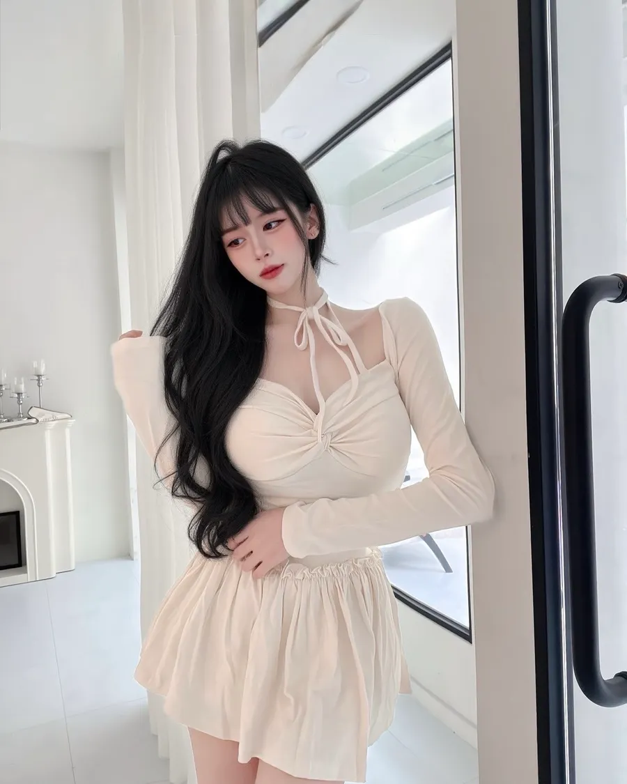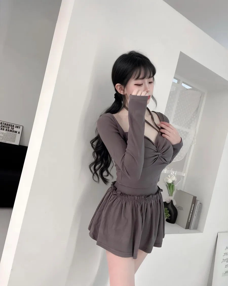 胸前抓皺加上綁繩設計把上身線條襯得柔和又有立體度🏻假兩件層次讓整體看起來更豐富不用費力搭就很完整🤩下身花邊散洋自然展開走動時裙擺很輕盈🌸彈性腰頭穿著舒適不勒溫柔氛圍感拿捏到了🌷杏 / 奶 / 灰 / 碳 / 黑