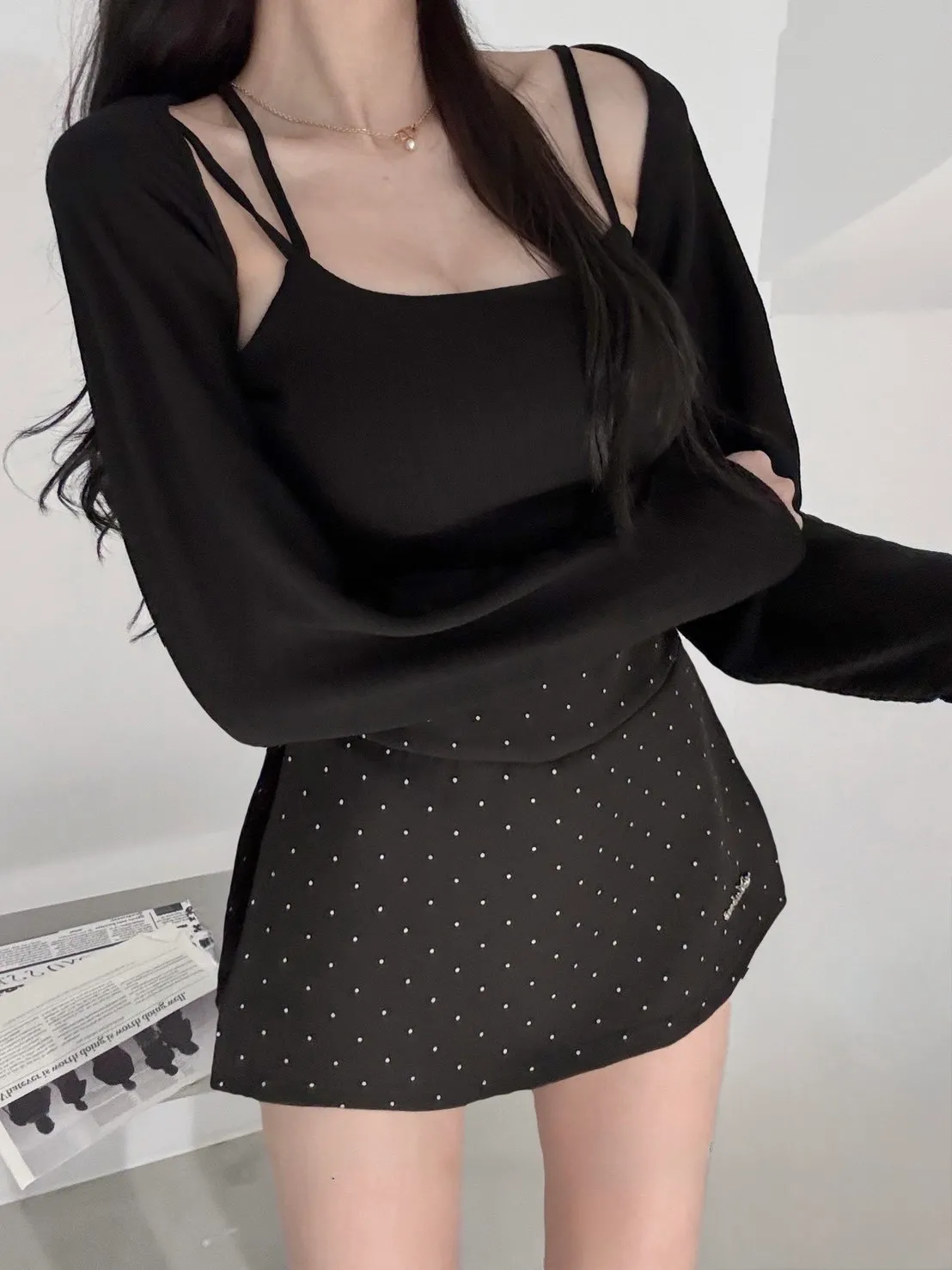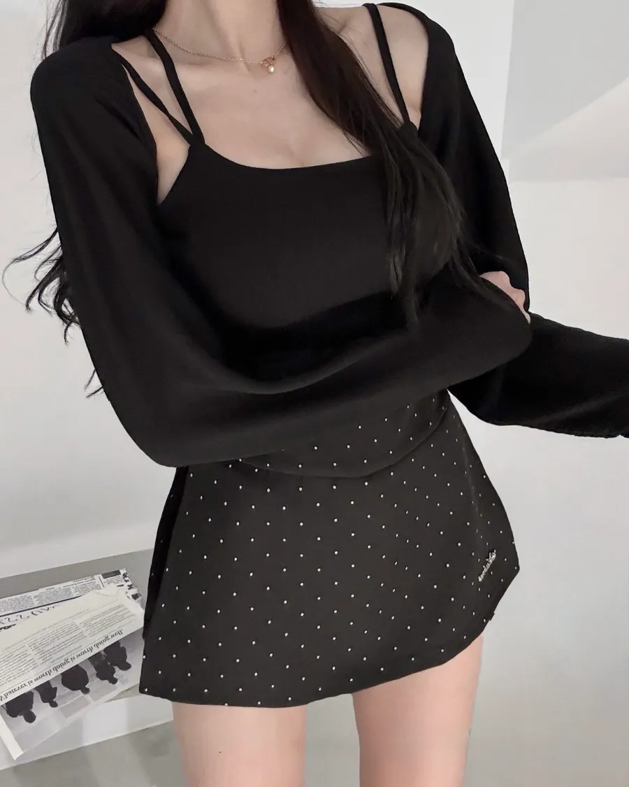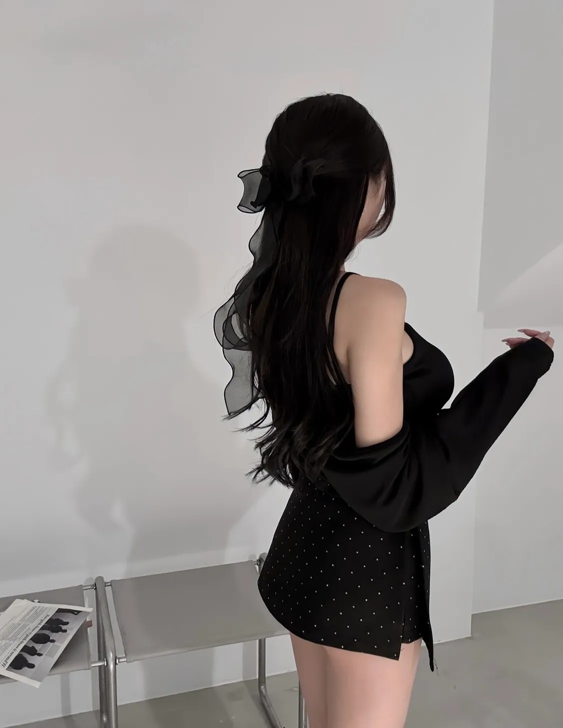 斜肩+細肩帶的設計把鎖骨線條修飾得很迷人✨