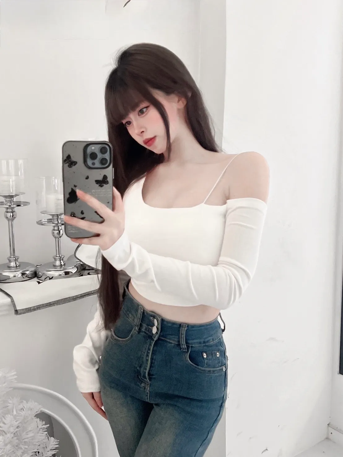 單肩細繩設計讓整體多了點不對稱的性感✨