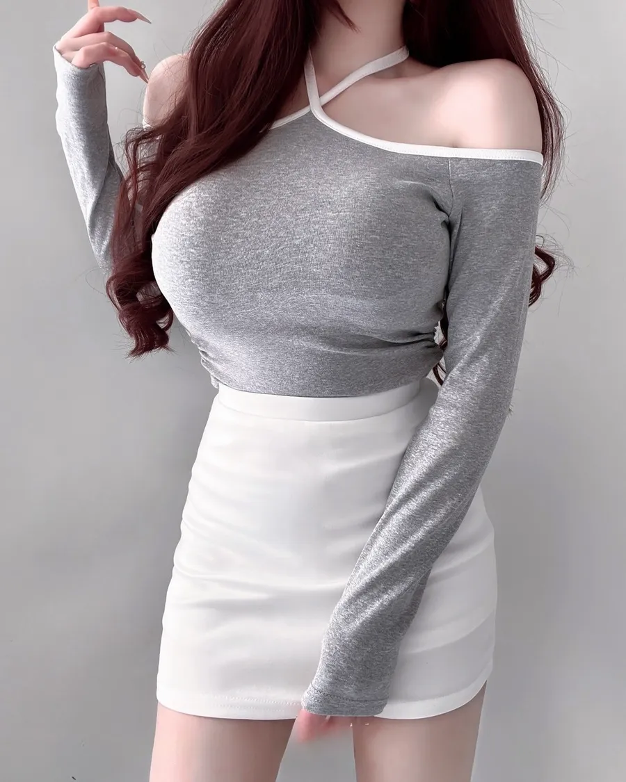 撞色交叉設計短版上衣