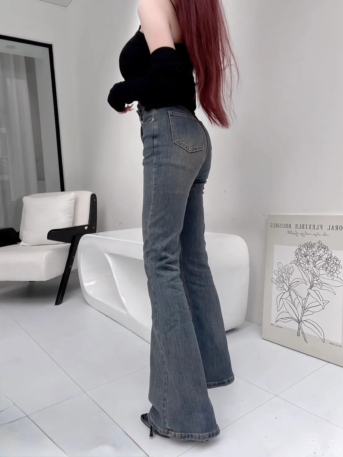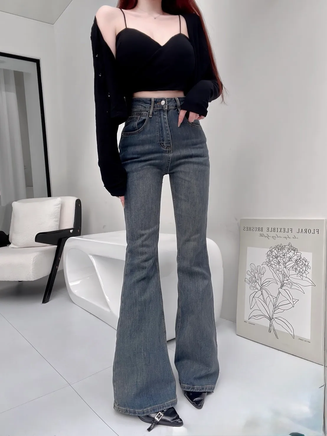復古高腰牛仔喇叭褲