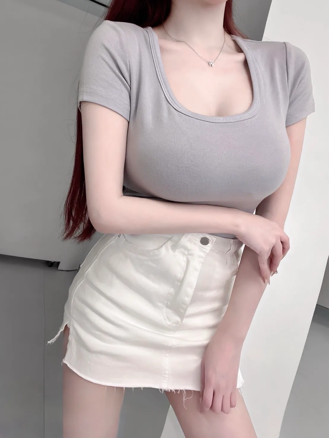 方領設計把鎖骨線條框得很乾淨