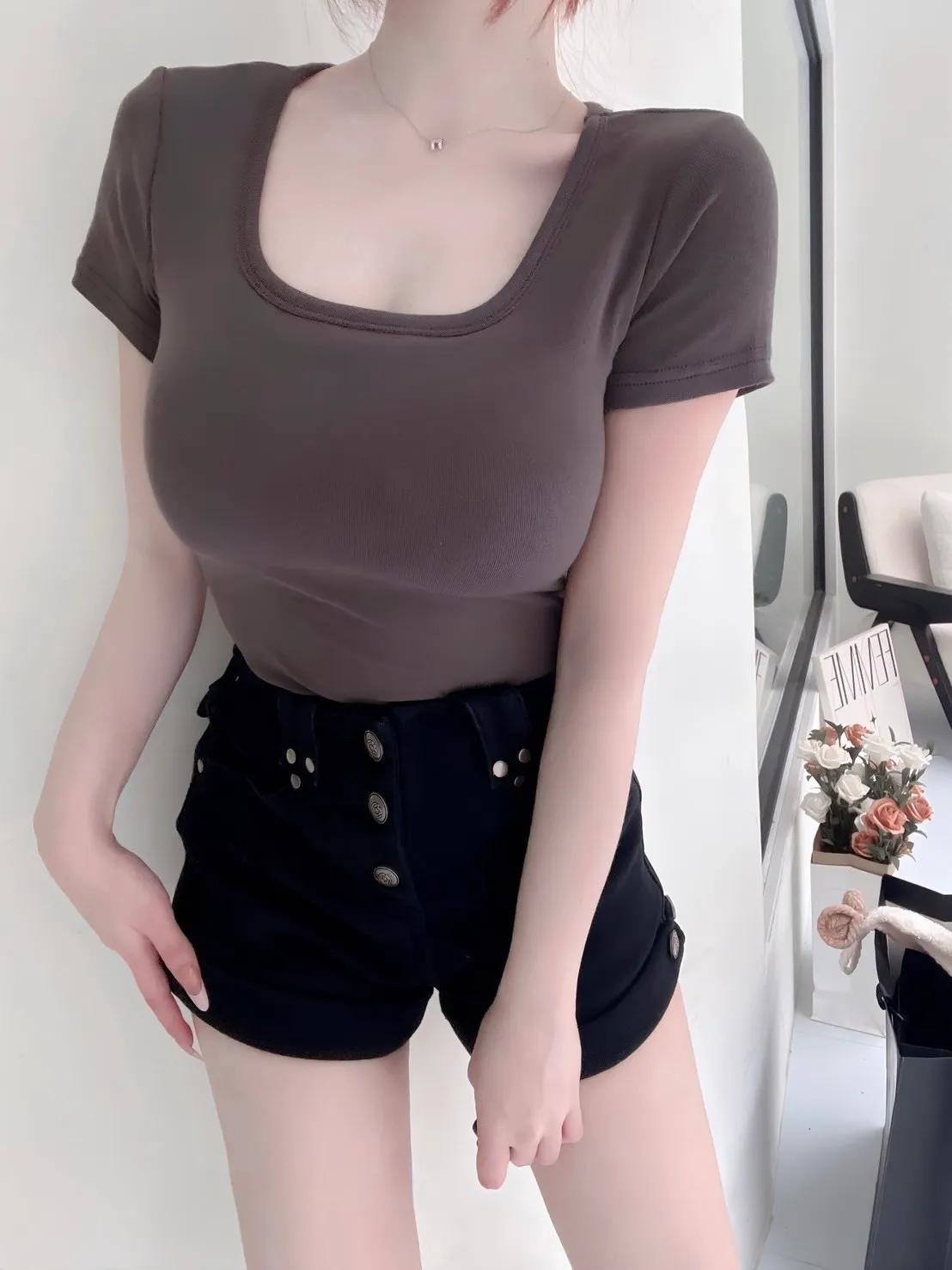 韓系方領內杯素色上衣