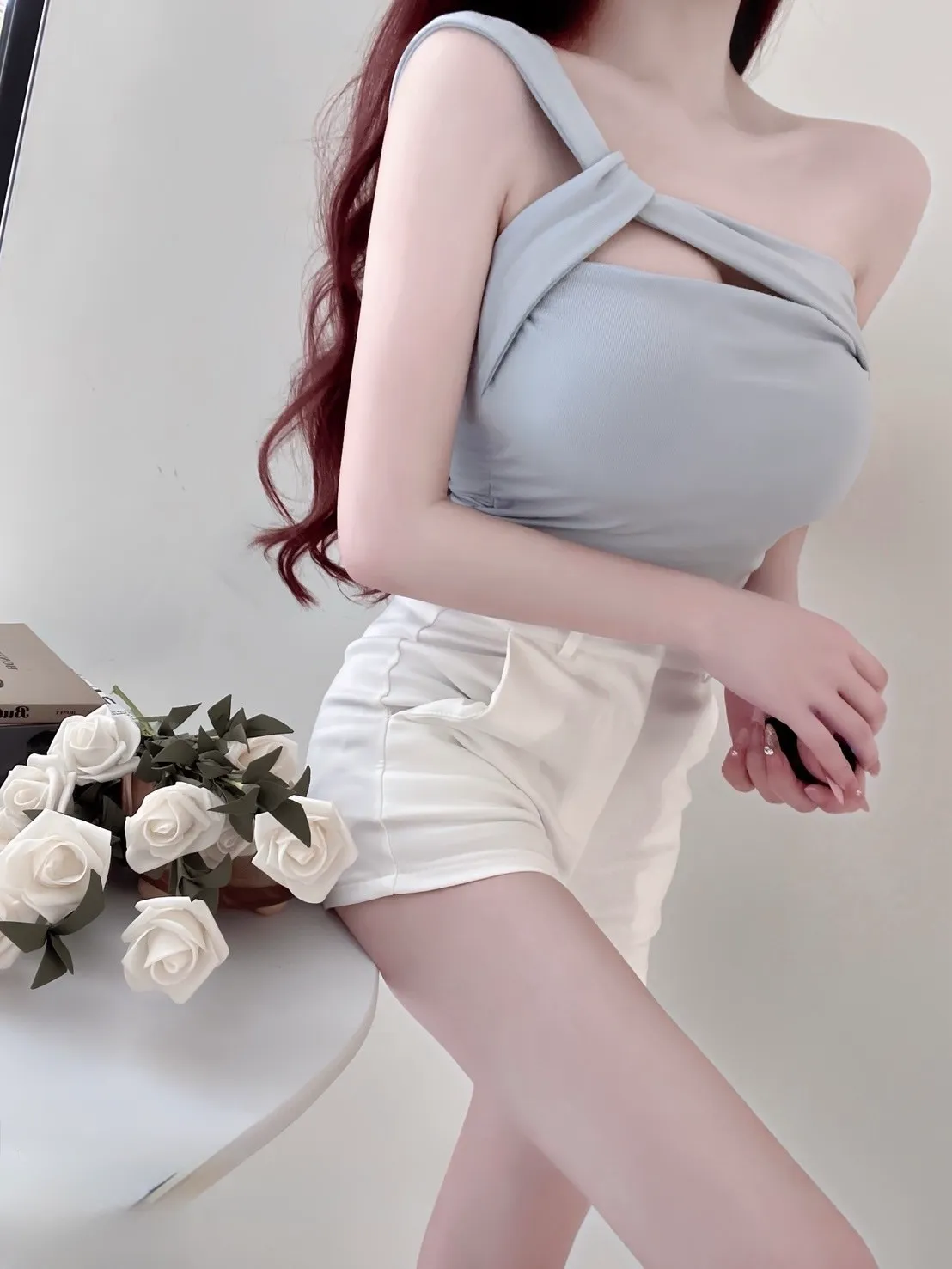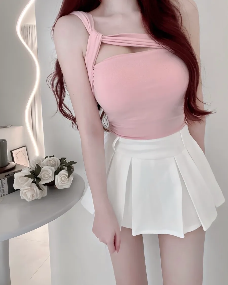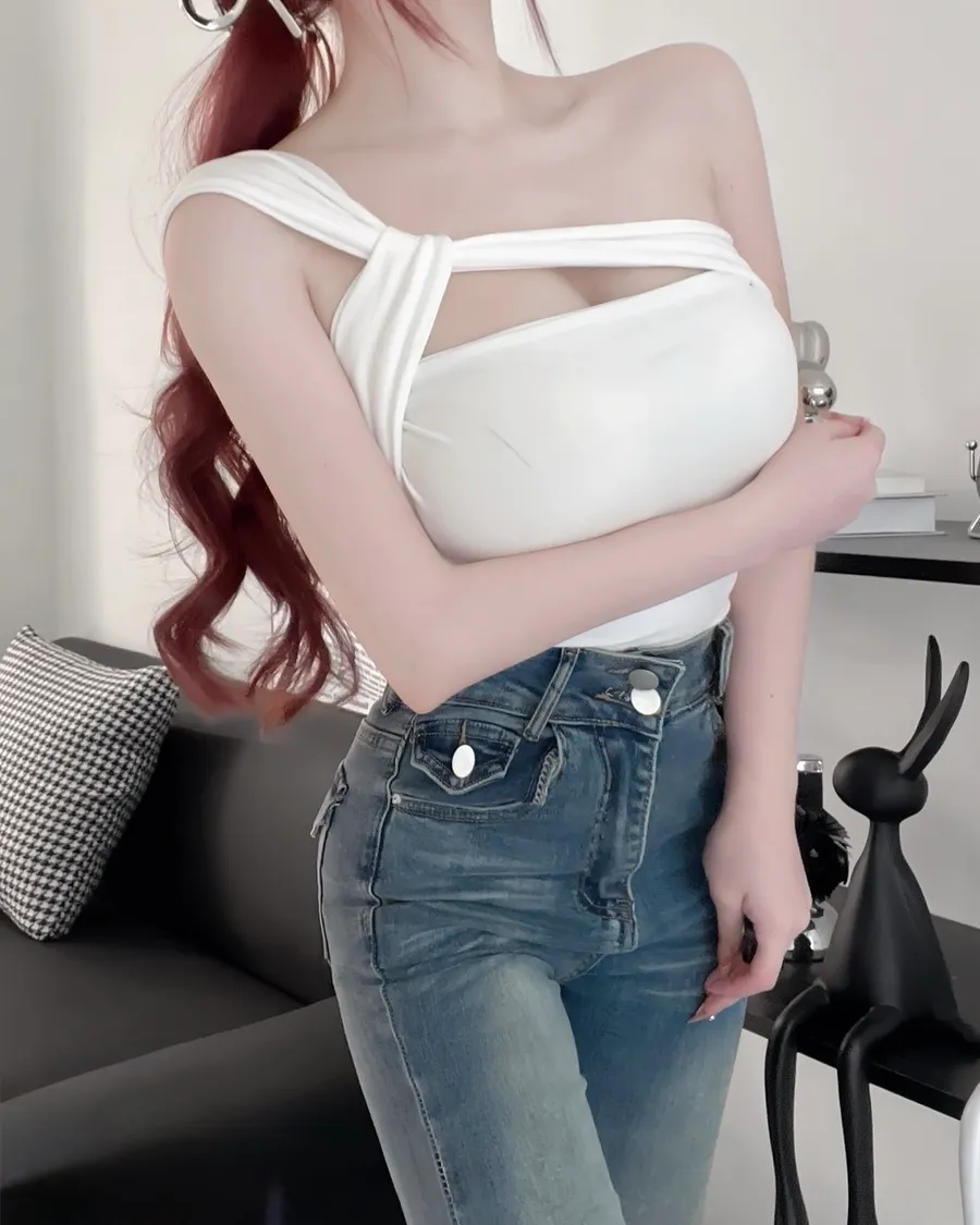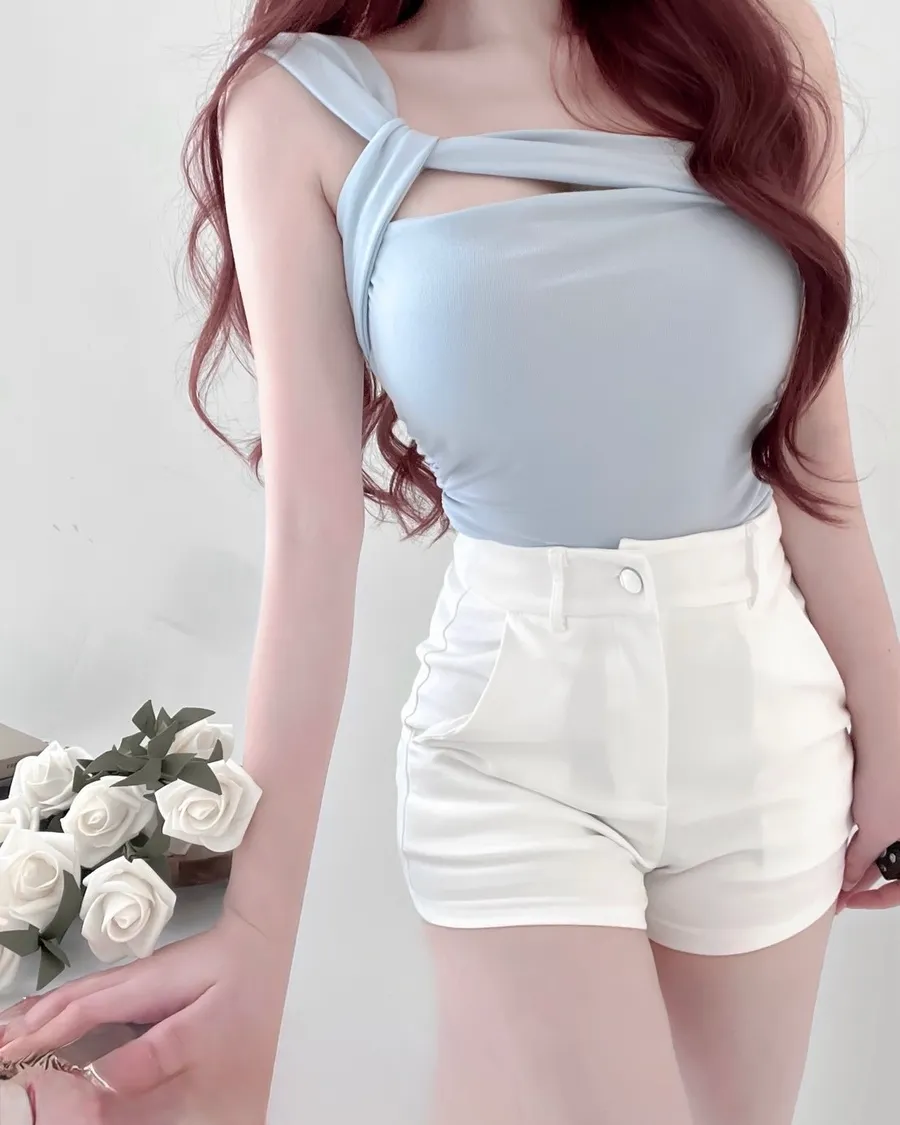 不規則設計感肩帶側抓皺上衣